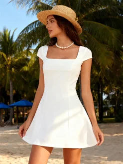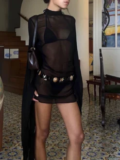 Women Cover-up Dress Flare Sleeve Turtleneck