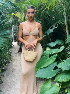 Women Long Dress Cross Halter Backless