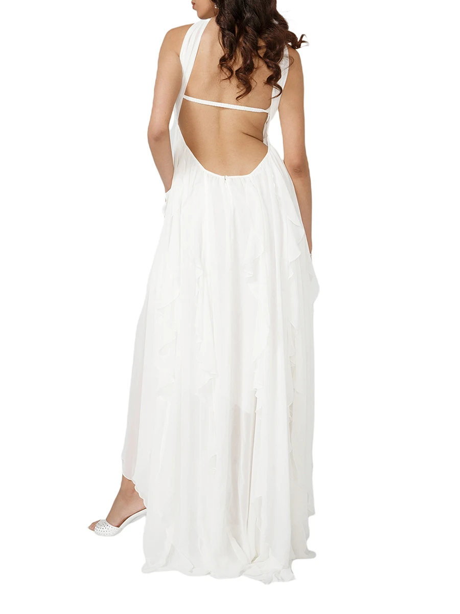 Women Summer Sleeveless Dress Irregular Ruffled Hem Backless Cocktail Party Dress for Beach Club Streetwear